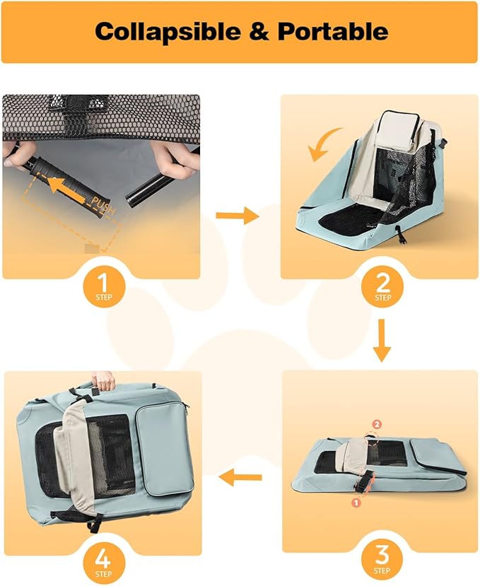 - 【Easy Assembly & Collapsible】This travel dog crate can be effortlessly assembled in 2 minutes, ensuring a stress-free experience for both you and your furry friend. When not in use, its collapsible design allows for compact storage, making it convenient to stow away under a seat or in any other confined space. Elevate your pet travel experience with this innovative and space-saving solution!