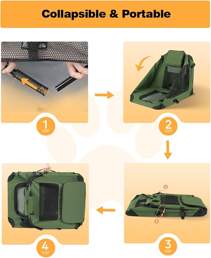 - 【Easy Assembly & Collapsible】This travel dog crate can be effortlessly assembled in 2 minutes, ensuring a stress-free experience for both you and your furry friend. When not in use, its collapsible design allows for compact storage, making it convenient to stow away under a seat or in any other confined space. Elevate your pet travel experience with this innovative and space-saving solution!