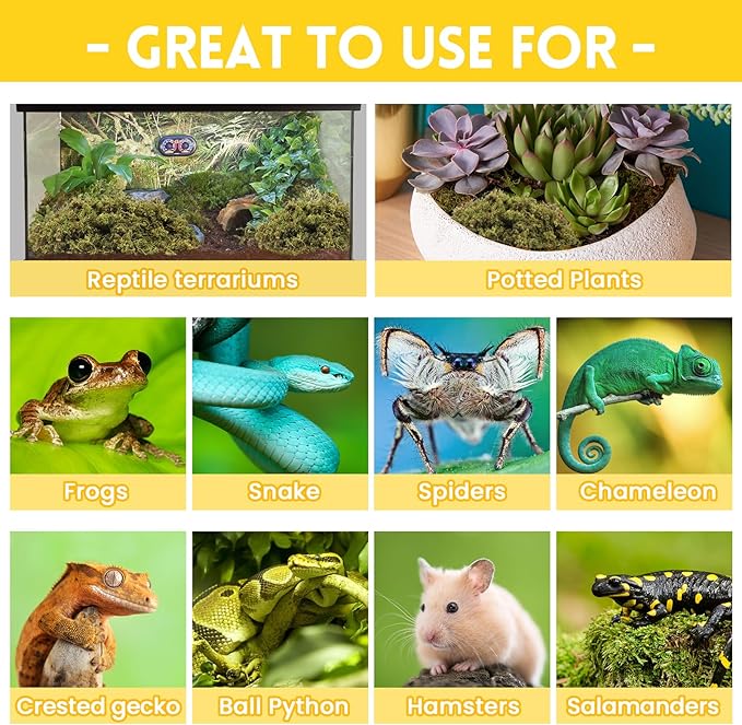 - Package Included: You will get 2.6 LB terrarium sphagnum moss for reptiles, it's a premium bedding for various animals terrariums. The natural reptile substrate can be used alone or mixed with other substrates, which perfect for rainforest terrarium setups, that can adjusting humidity levels to provide a comfortable and natural habitat for wetland environment reptiles