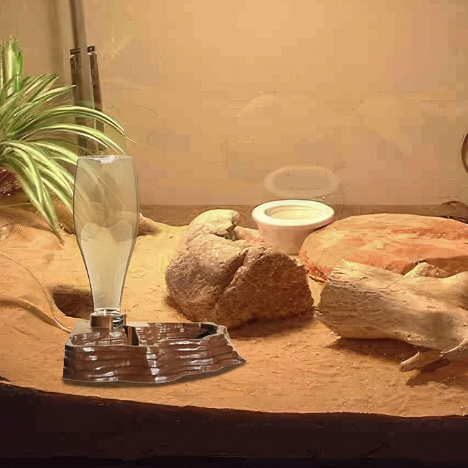 - Hassle-Free Water Dispenser: This automatic water feeder ensures a constant source of fresh water for your reptile, without the need for manual refilling. You can be assured that your pet always has access to clean drinking water, even when you're not around.