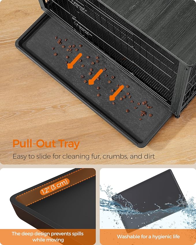 Feandrea Dog Crate Furniture, 44.1" Side End Table, Modern Kennel for Dogs Indoor up to 80 lb, Heavy-Duty Dog Cage with Multi-Purpose Removable Tray, Double-Door Dog House, Ink Black UPFC004B01
