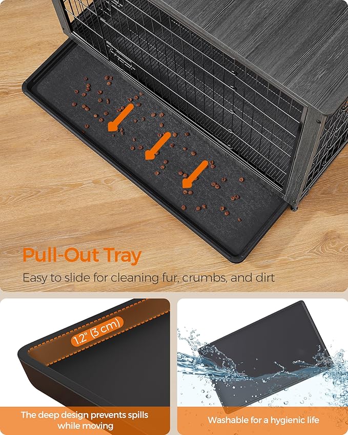 - [Sturdy and Chew-Resistant] Made with durable particleboard and steel, this piece of dog furniture is sturdier and more chew-resistant than wooden dog crates, offering a lasting, stable, and safe retreat for your fur friend