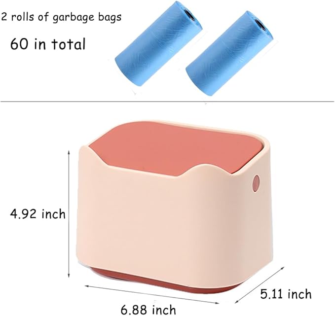 - 【Size】Our cat litter bin size is 6.88 x 5.11 x 4.92 inches, and the garbage bag size is 11.81 x 11.81 inches The trash can is small and charming, with a perfect size that can be stuffed into any corner and used in conjunction with a litter box.