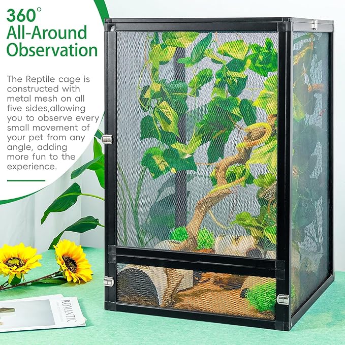 - 1. 360° All-Around Observation: The Reptile cage is constructed with metal mesh on all five sides, allowing you to observe every small movement of your pet from any angle, adding more fun to the experience.