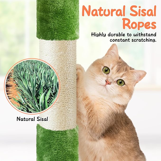 - SCRATCHING POSTS: Cat scratchers can make cats satisfied and protect your furniture from their paws. Three posts covered by natural sisal ropes are perfect for scratching