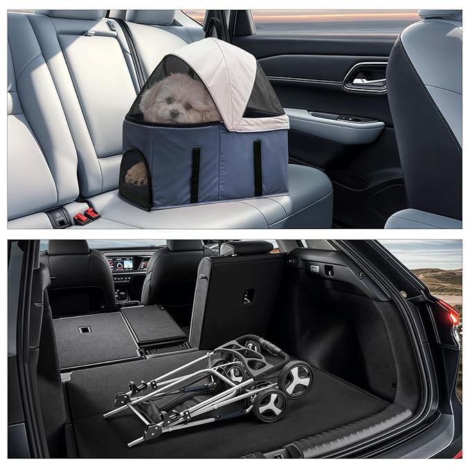 - 3-in-1 Multifunction Design - This innovative pet stroller doubles as a pet carrier bag and a car seat, offering unparalleled flexibility for various situations. Whether you're taking a stroll, traveling, or driving, this stroller adapts to your needs.