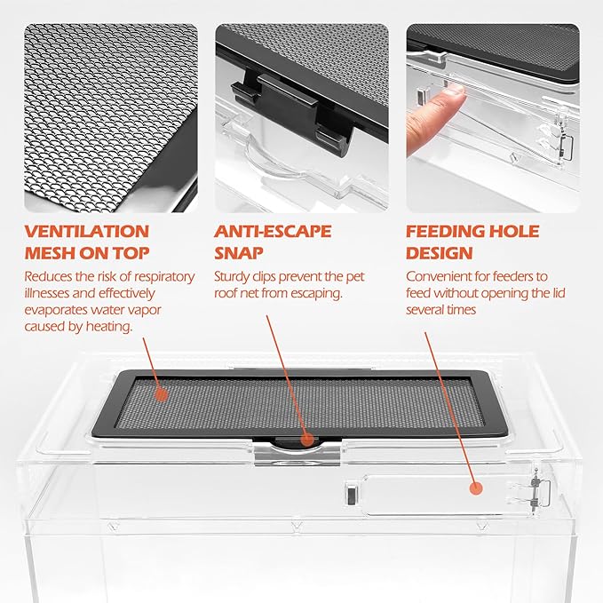 - Designed for Easy Feeding: Our amphibian feeder features convenient feeding holes and escape-proof door locks, eliminating the need to open the lid multiple times for feeding. It's designed to make feeding easier and more convenient for caretakers