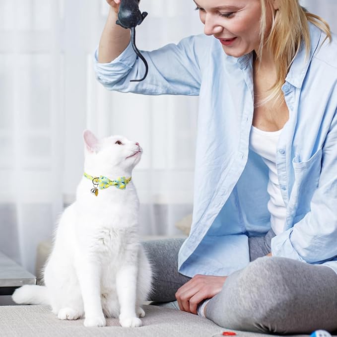 - CAT COLLAR PERSONALIZED: Adopting fruit insect elements (lemon & bee), perfect for spring, summer wear. Make your fur baby more cute and lively. The bow, bell and pendant are removable, you can dress up your cat according to your preference.