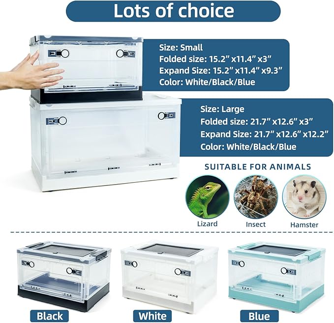 - 1.【Portable and Foldable Reptile Habitats】: Introducing portable and foldable designs, our reptile terrariums are perfect for travel and temporary pet placement. They provide unmatched convenience without occupying much space, offering a hassle-free solution for on-the-go reptile care.