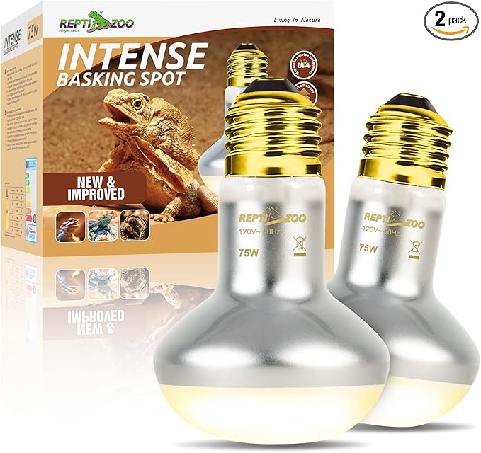REPTI ZOO 2 Pack Heat Lamp 75W, Intense Basking Spot Simulated Natural Sunlight Heating Lamp Bulb, Heat Emitter UVA Heat Lamp Bulb for Reptile Chickens Pet Brooder