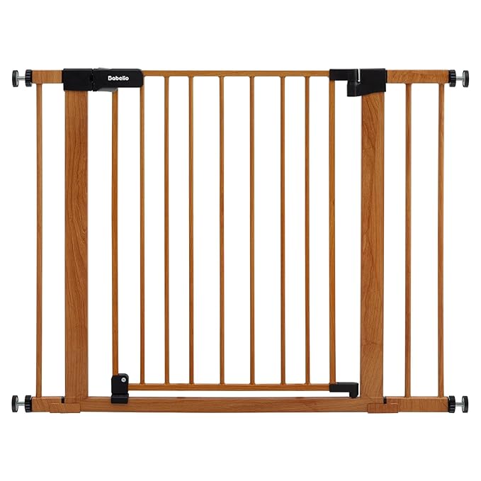 BABELIO 29-40" Metal Baby Gate with Wood Pattern, Auto Close Dog/Pet Door for The House、Stairs and Doorways, Pressure Mounted Barrierr, NO Tools Needed
