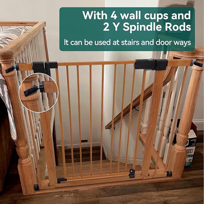 - 【AUTO-CLOSE DESIGN】:The wooden gate stops at 90° and auto-closes when opened less than 90°. Perfect when your hands are full—simply pass through, and it will securely close behind you, keeping baby safe