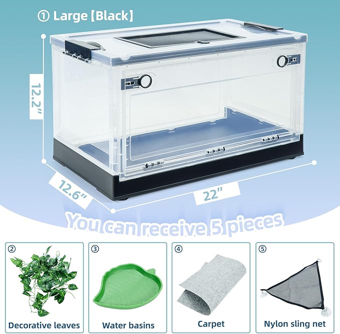 - 1.【Portable and Foldable Reptile Habitats】: Introducing portable and foldable designs, our reptile terrariums are perfect for travel and temporary pet placement. They provide unmatched convenience without occupying much space, offering a hassle-free solution for on-the-go reptile care.