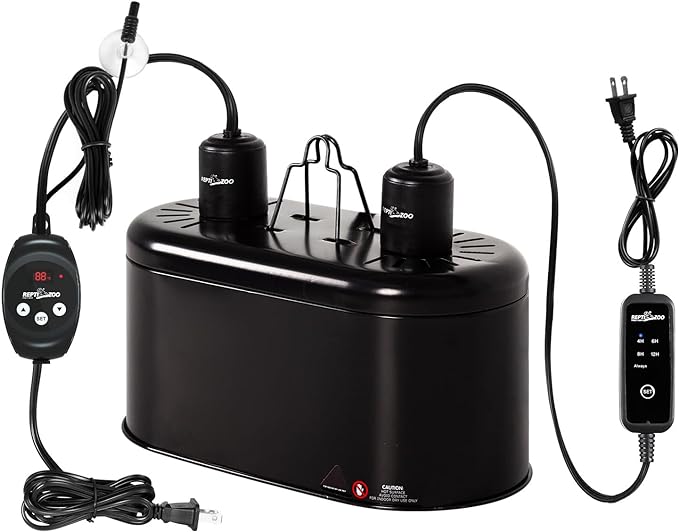 - 【Great Value】With one purchase you can have dual deep dome reptile light fixture, dimming thermostat, and timer! With independent controls, you can set the suitable temperature range and heating or lighting time for your pet separately, which makes it easier to manage. (One side of the dual fixture features a timer function, while the other side has a temperature control function. The temperature control and timer functions cannot be used on the same side.)