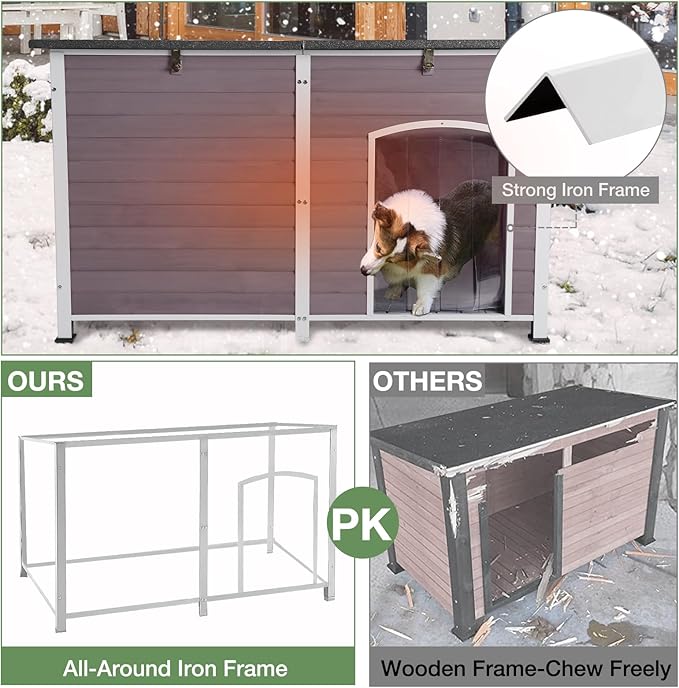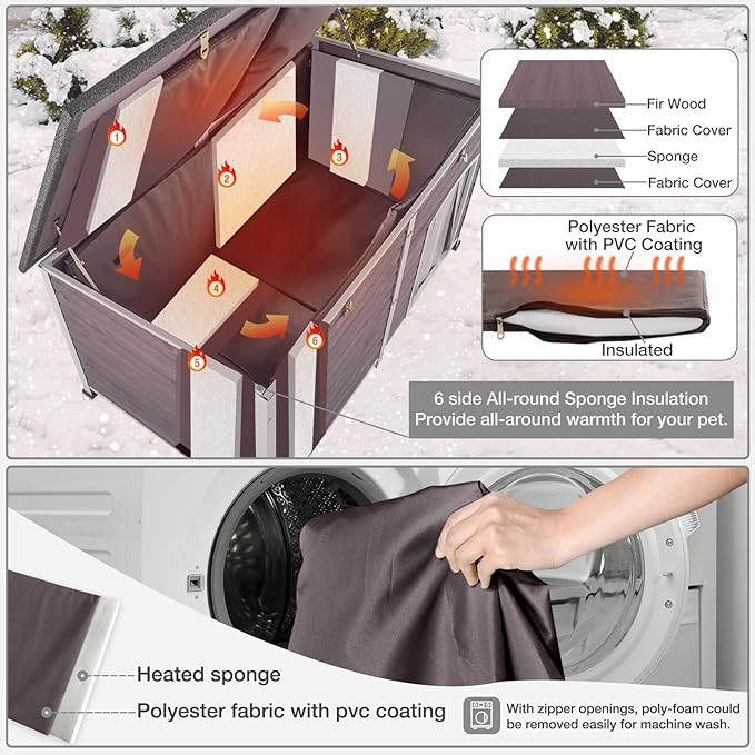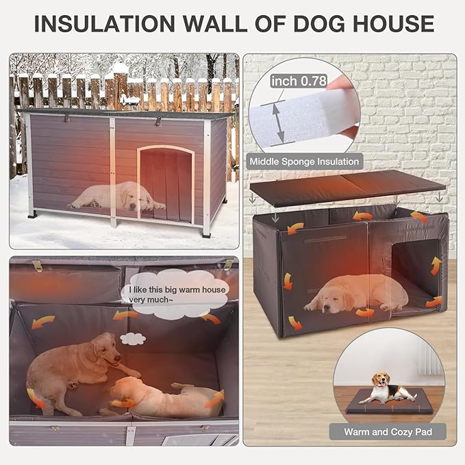 - 【Insulation Dog House】The walls, floor ,and roof, 6 Sides insulated liner,200% insulated than regular dog houses,keep warm in winter and stay cool in summer.