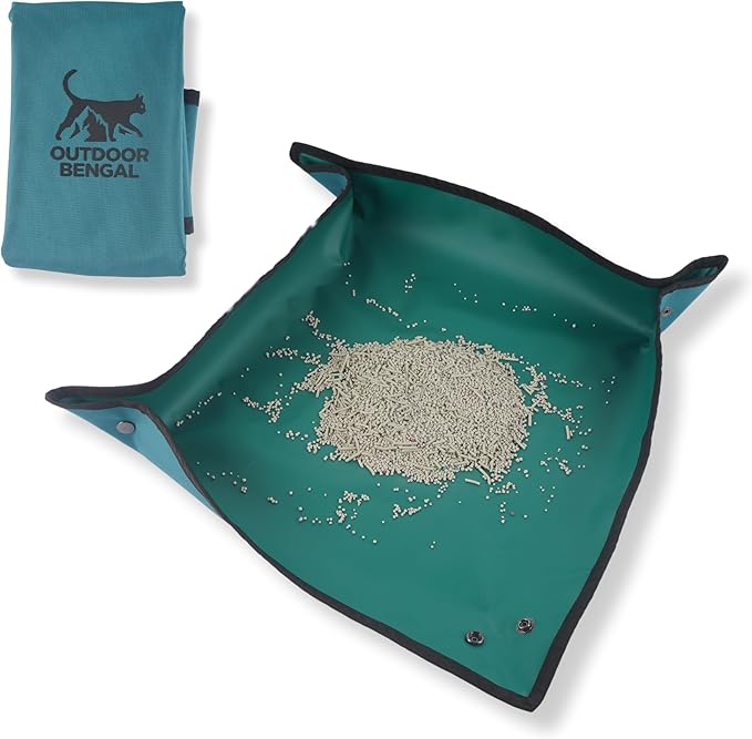 - PORTABLE and EASY to CARRY: The OutdoorBengal travel litterbox for cats is light and collapsible making it very compact and easy to carry. It can be folded into wallet size within seconds. Don't worry about embarrassing moments on the road or when traveling.