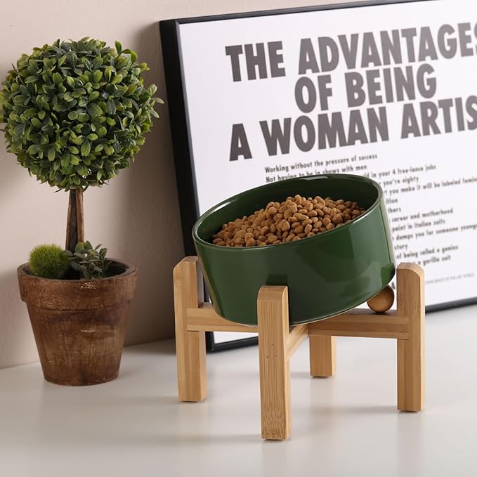 - Easy to Clean and Microwave Safe Ceramic Material - Cute dogs cats bowl with WOOD STAND design matches the home decorations. Ceramic bowl is made of Porcelain, this ceramic cat dog food water bowls are High temperature ceramic, non-toxic durable. conveniently dishwasher Microwave safe so this ceramic food bowl can be easily cleaned. No Fuss.