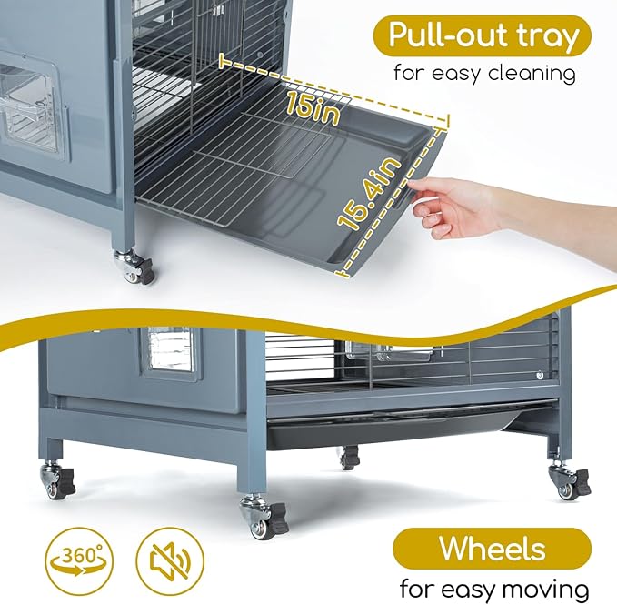 - 【Easy to Clean】The slide-out tray is easy to remove for cleaning and you can rinse it directly with water. Bottom grille help keep pet and cage clean.