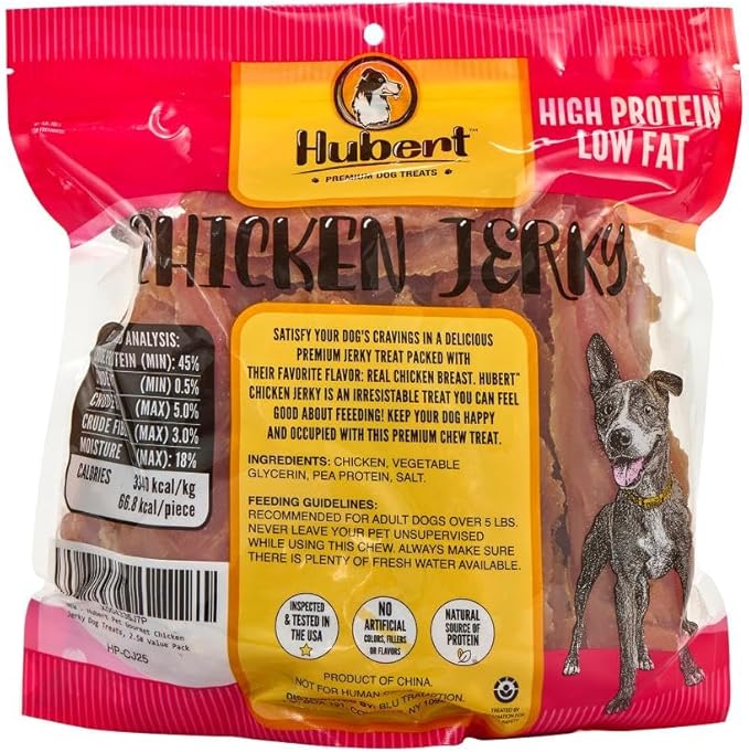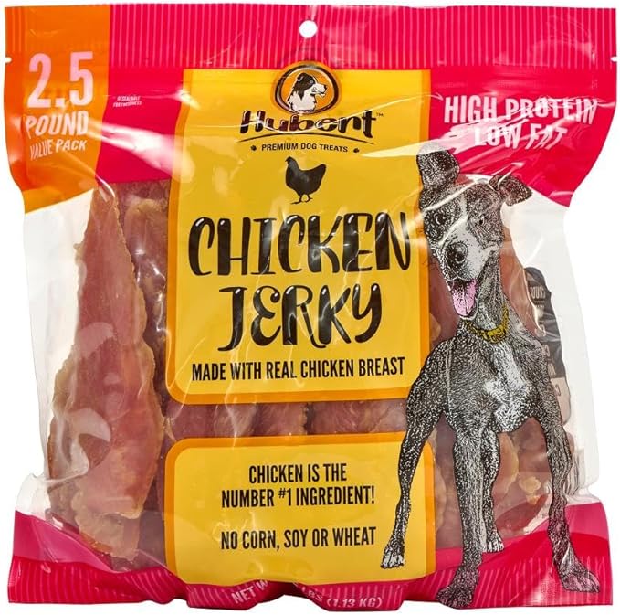 Hubert Pet Premium Chicken Jerky Dog Treats, Grain Free, Low Ingredient, USA Tested, 2.5 lbs Super Value Pack