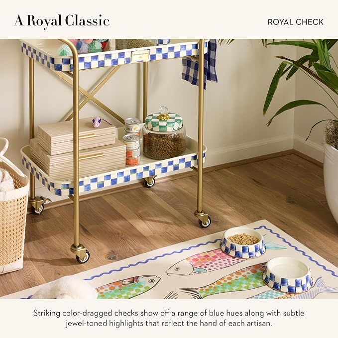 - ELEVATED PET SUPPLIES: We’ve yet to find a pet that doesn’t look good with our signature Royal Check dog food and water bowl, which features glossy hand-painted checks in a range of blue hues.