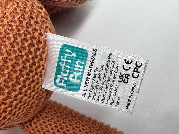 100% Organic Cotton Baby Toys Orange Fox Stuffed Animals for Newborn 7.1"