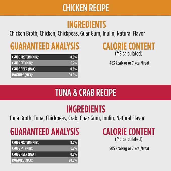 - Premium cat treats with a high-moisture content to promote your feline friend's hydration throughout the day. Variety pack of 40, 0.5 Oz each.