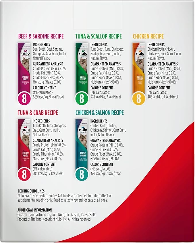 - RICH IN FLAVOR AND LOW IN CALORIES - These lickable cat treats are a flavorful way to reward your four-legged friend for a job well done. Nulo Freestyle, where nutrition meets flavor and enriches the lives of cats and cat lovers all over the world.