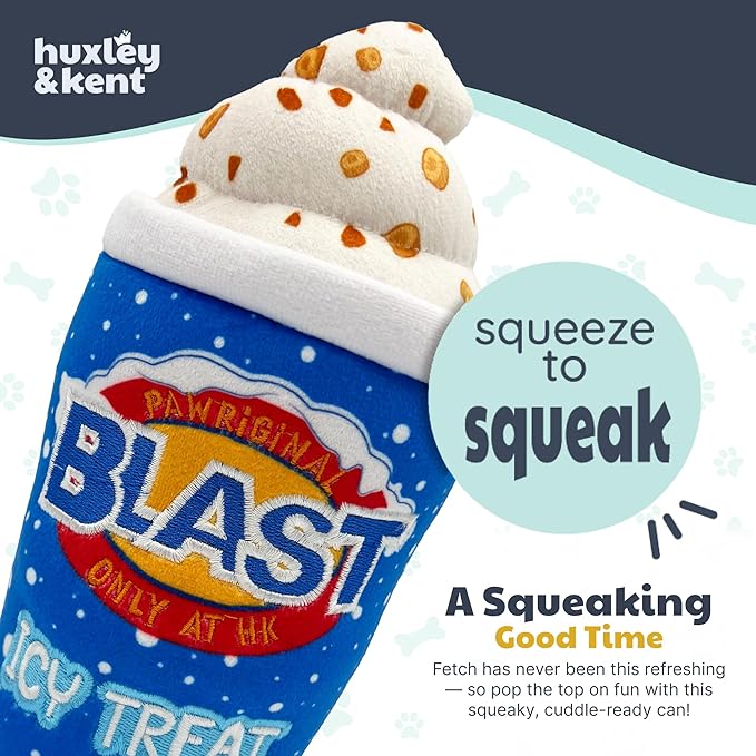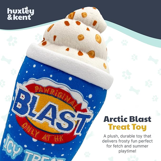 Huxley & Kent Funny Dog Toy w/Squeaker – Power Plush Squeaky Dog Toys for Small, Medium & Large Dogs – Soft Stuffed Animal for Indoor Play & Fetch - Arctic Blast Treat, Small
