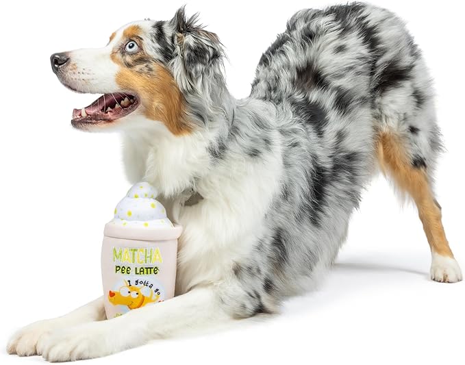 Huxley & Kent for Dogs - Matcha Pee Latte (Large) - Funny Durable Power Plush Dog Toy with Squeaker - Dog Gift