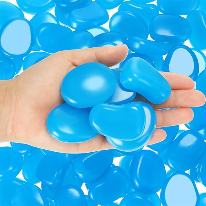 - Versatile Applications: these luminous pebbles are as functional as they are beautiful; Except being fish tank rocks, they are also ideal for landscaping, designing paths and backyards, and decorating aquariums and plant flower beds; Their radiant glow and alluring dark blue color transform any ordinary space into an extraordinary one, both indoors and outdoors; Plus, they're safe for humans and animals, so you can share the beauty of these glow in the dark stones with your loved ones