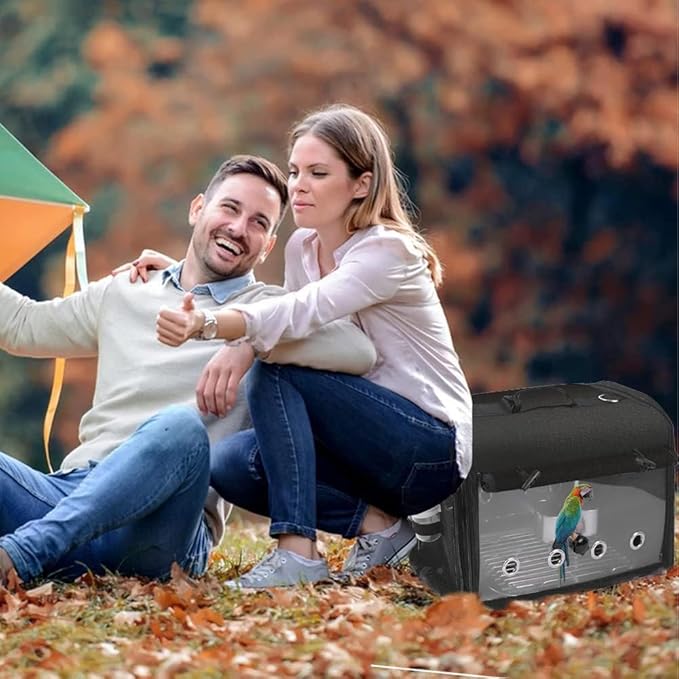 SUERTREE Bird Carrier Bag Bird Travel Cage with Stand, Lightweight Backpack for Parrot, Portable Bird Travel Bag, Pet Transparent Breathable Travel Cage, Black