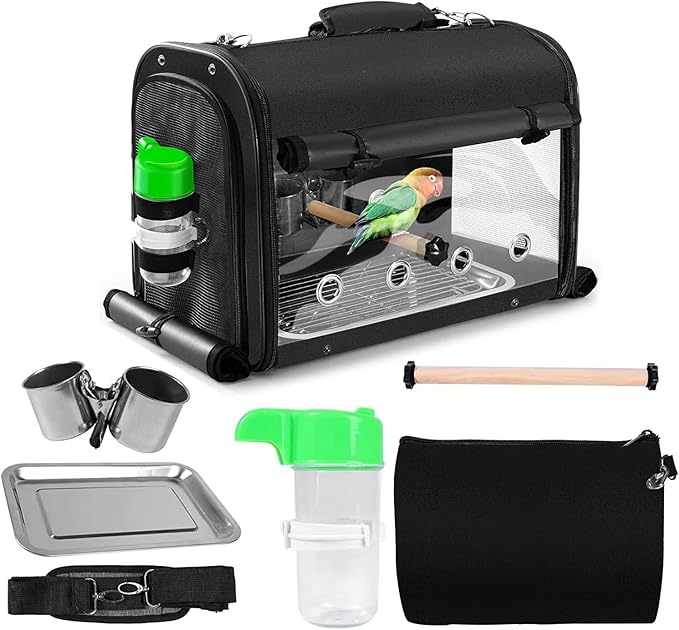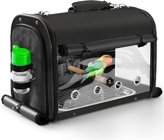 - 【FEEDING & PERCHING】There are removable bowls, a water bottle and two perches come with the bird carrier. It provides a comprehensive care and comfortable environment for birds.
