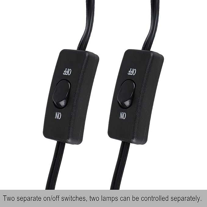 - 【Two Idependent Switches】:This dual reptile lamp fixture has two independent switches and plugs. Two independent switches can control each lamp separately. You can easily set up a comfortable light and temperature environment by equipping different lights and switch lights for your pet.
