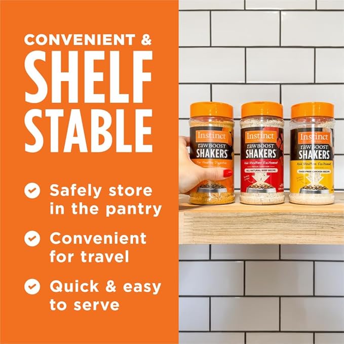 - FREEZE-DRIED RAW DOG FOOD TOPPER: Instinct Raw Boost Shakers Cage-Free Chicken Recipe lets you easily add raw to every bite. Made with cage-free chicken, chicken liver, and non-GMO fruits and vegetables.