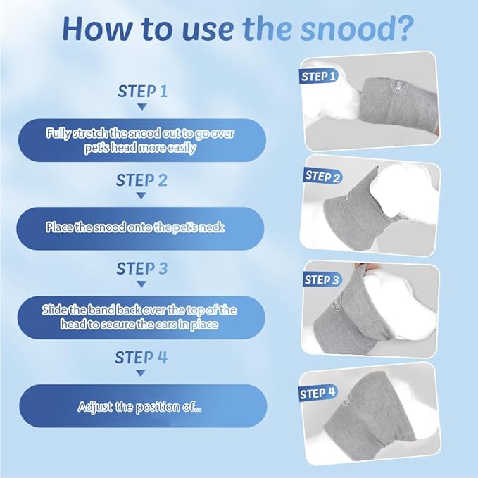 - Covers Ear Wounds - Our pet snood is made of soft cotton fabric, good to heal or prevent hematomas, aerate the ears to speed up recovery of an ear infection and keep medication from being shaken out of ears. Made for groomers, The loud noise and high-pressure air generated during dog toenail clipping, hair clipping, brushing with stressful situations as well as strong drying after bathing soothes and protects the dog, the dog feels more secure and makes pet grooming smoother. A must-have dog anxiety calming aid for your pet grooming toolbox.