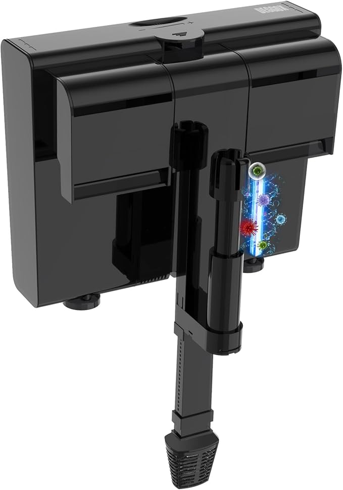 U-V Aquarium Filter for 20-50 Gallon Tank,Hang On Back Aquarium Filter Green Water Cleaning Machine,HOB Filter Ultra-Quiet Powerful Pump 170GPH for Fish Turtle Tank with Surface Skimmer