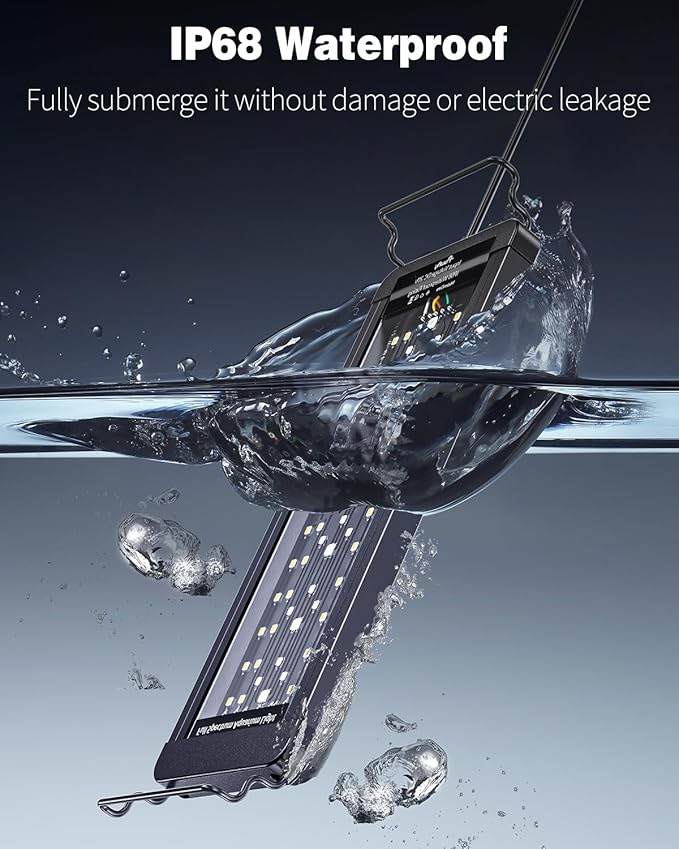 - D/N Mode: Customize the daytime and night working hours with the IP68 waterproof fish tank light. Daytime duration: 6 h, 8 h and 10 h; Night duration: 2 h, 3 h and 4 h. Simulate the daylight and moonlight to create a natural environment.