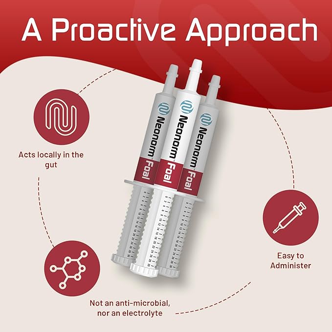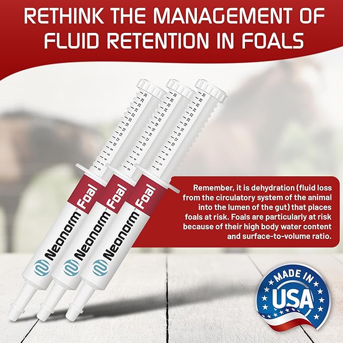 - SPECIALIZED FOR FOALS: Recognizing the unique physiological needs of foals, Neonorm Foal is specifically developed to cater to their high body water content and surface-to-volume ratio. As it is not an antimicrobial, it can be used to prevent dehydration in pre-weaned foals without the concern of antimicrobial resistance. This specialized formulation helps mitigate the risk of dehydration, which is critical in the early stages of a horse's life, promoting a healthy and vigorous start.