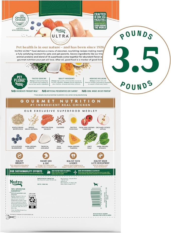 Nutro Ultra High Protein Dry Puppy Food, Trio of Proteins from Chicken, Lamb and Salmon, 3.5 lb Bag
