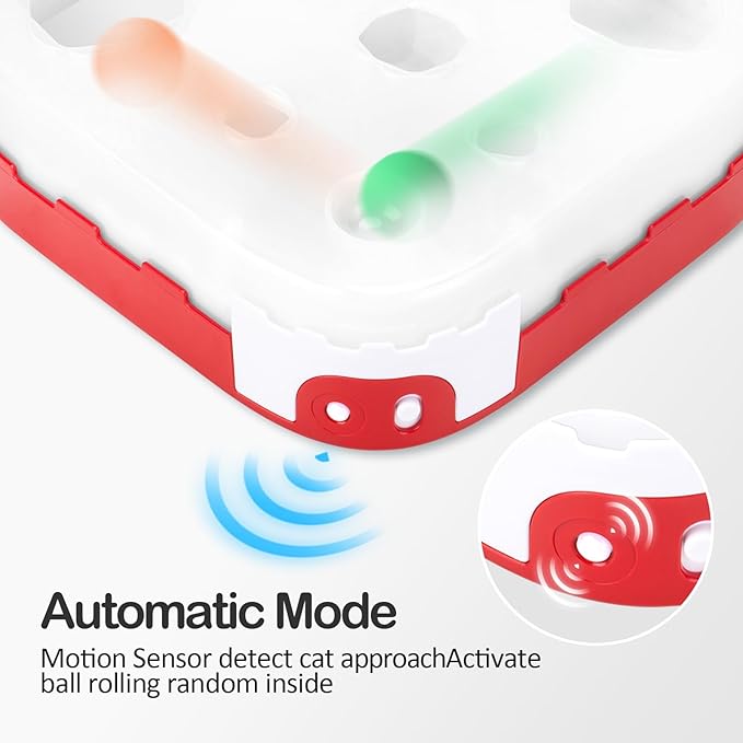 - 😺【 Extend Effective Playtime 】This Intelligent cat toy is equipped with the motion sensor that will detect the ball rolling randomly and quietly in the Paw-Hockey-League when the cat comes with one meter. After turning on on the switch, kitties can play the smart toy by themselves at any time, and when the cats walk away, it stops automatically.