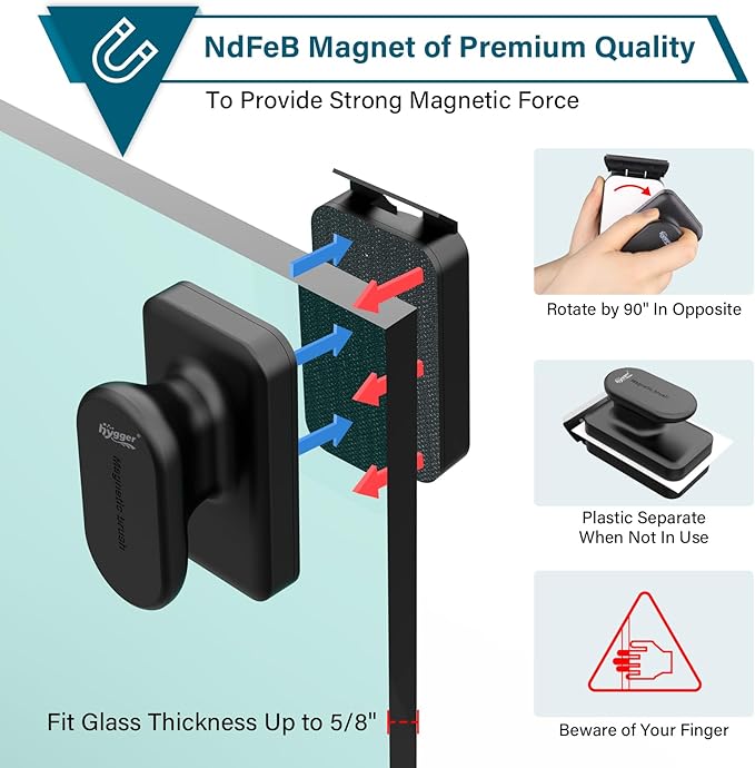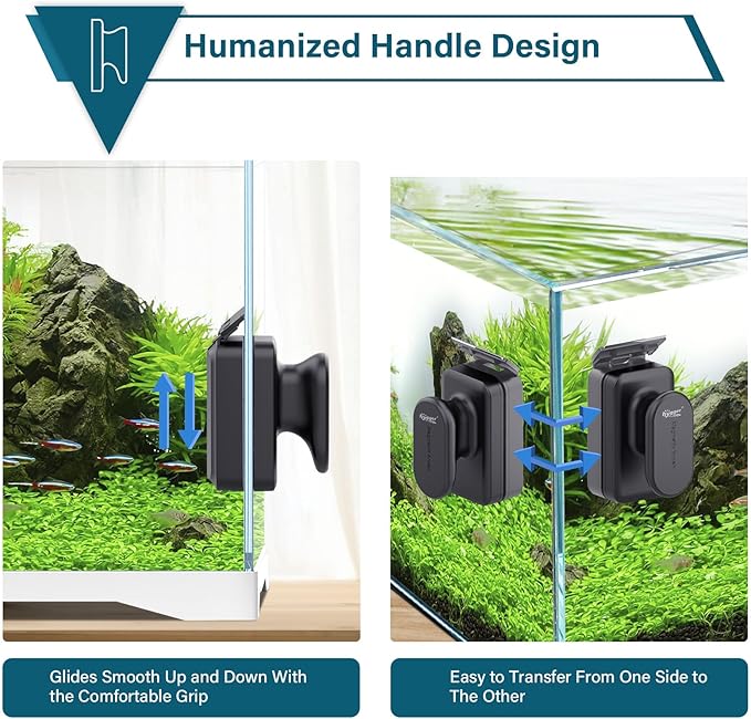 - Double Sided Magnetic: Adopt premium quality neodymium magnet to provide strong magnetic force ensuring that both side brush fit with aquarium firmly and tightly to make cleaning more effortless and smoothly. Works great on glass tanks up to 5/8" thickness