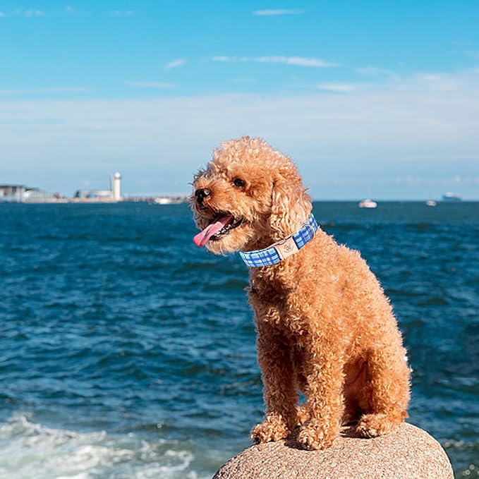 Elegant little tail Dog Collar, Blue Plaid Pattern Pet Collar Durable Cute Dog Collars Male or Female Pet Gift Adjustable Dog Collar for Small Dogs