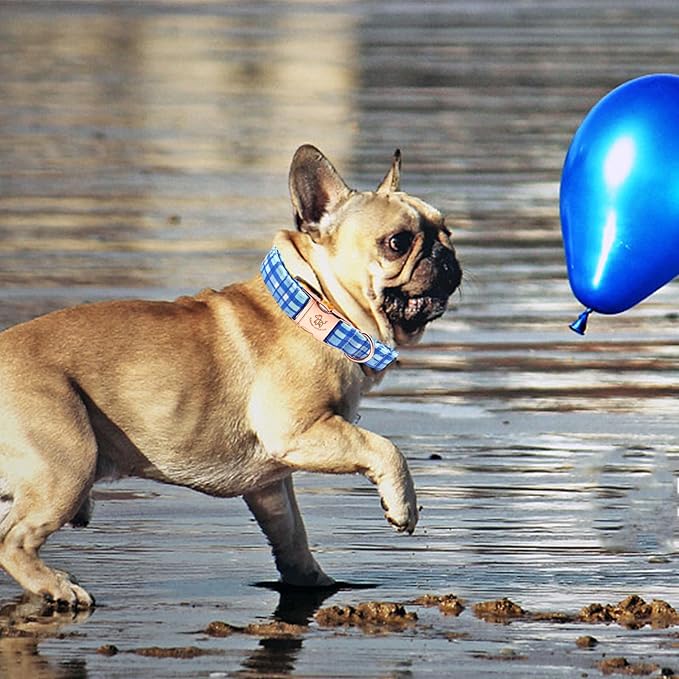 Elegant little tail Dog Collar, Blue Plaid Pattern Pet Collar Durable Cute Dog Collars Male or Female Pet Gift Adjustable Dog Collar for Large Dogs
