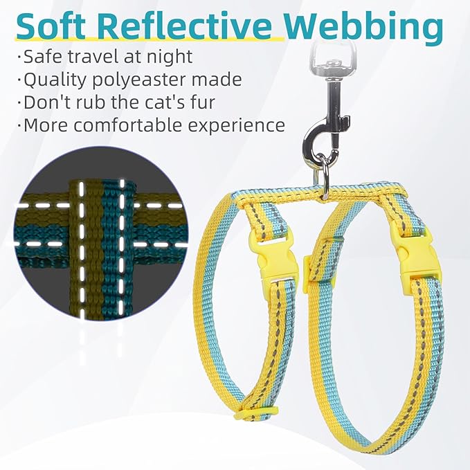 PUPTECK Adjustable Cat Harness and Leash Set Escape Proof Kitten Strap Collar for Walking Travel, Yellow Blue