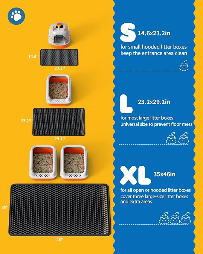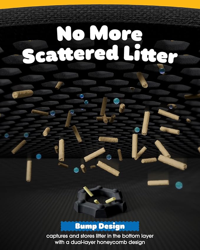 - DOUBLE-LAYER LITTER CATCHER: With a honeycomb hollow layer and leakproof bottom layer, Powools double-layer kitty litter mat can effectively trap loose litter from the box and cat paws. Moreover, the side-opening design allows you to tip the mat and pour the collected litter into the litter box, easily recycling it and reducing waste.