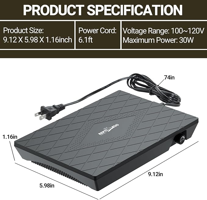 - 【Integrated Fan for Safety】: The built-in fan gently circulates warm air, preventing hot spots that could lead to burns. This innovative feature of the reptile heat plate ensures that your reptile stays safe while enjoying a comfortable temperature, making this heating pad a reliable choice for pet owners.