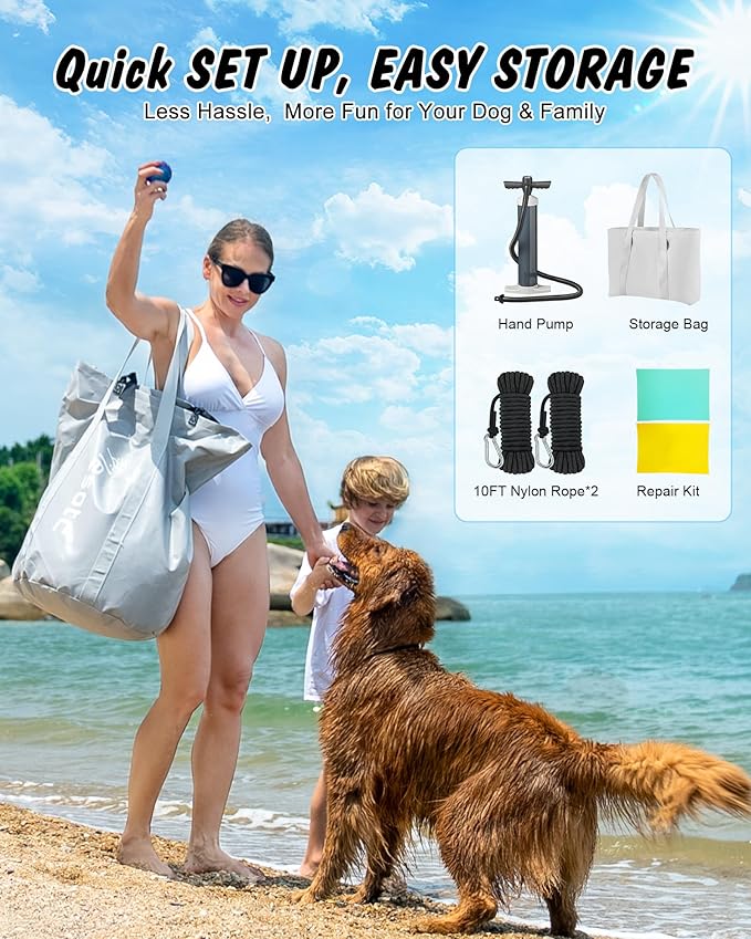 - Versatile Dog Water Ramp: This inflatable dog ramp not provides a safe and convenient way for dogs to get in and out of water, but also serves as pool lake float for dogs. perfect for a range of water settings including pool, boat, dock, lake, sea and beache.