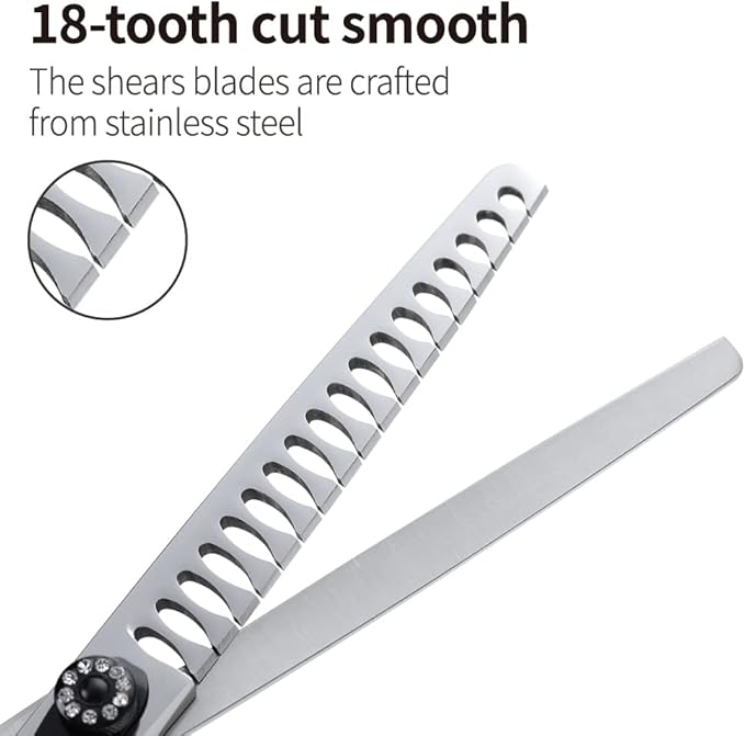 Fenice Peak 8.0'' Dog Chunker Scissors For Grooming 440C Stainless Steel Black Non-Slip Handle Sharp Blades Professional Pet Trimming Scissors for Cats Thinning Rate 75%