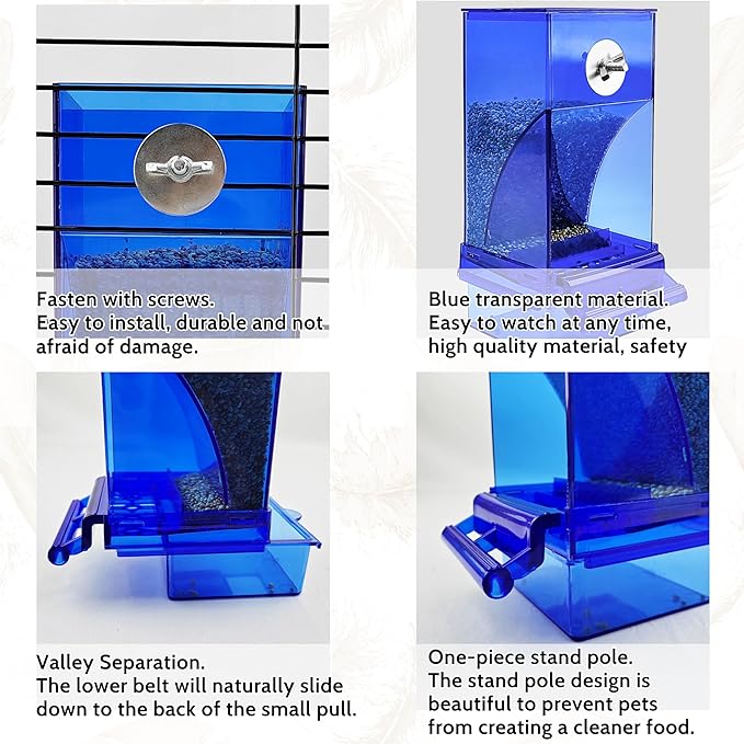 - Premium Material: Automatic feeder is made of high-quality and durable acrylic material, transparent and durable, and the food capacity can be observed at any time, which is the best material for bird supplies