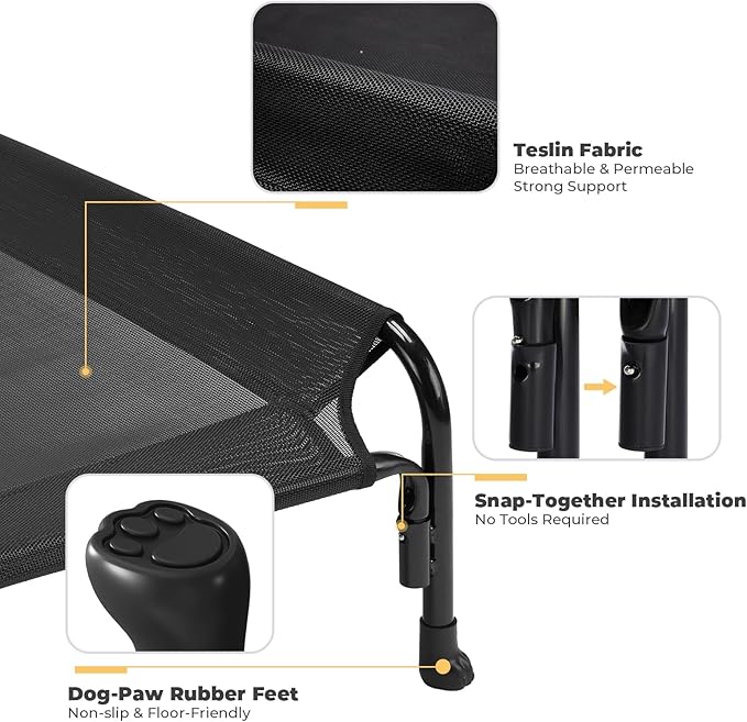 Veehoo Large Elevated Dog Bed, Outdoor Raised Dog Cot Hammock Bed with One-Sided Removable Headrest Bolster, Cooling Breathable Washable Teslin Mesh, Off Ground, Anti-Slip, L, CWC2204BCP
